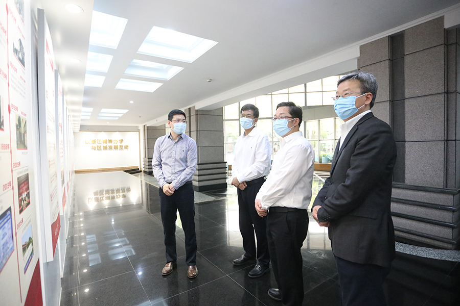 4月22日,钱塘区委书记金承涛,区委副书记、区长沈燕俊,区委常委、常务副区长孙刚锋,区政府党组成员、副区长徐进等来校调研浙江省药物创制生化工程技术创新中心建设。学校党委书记蔡袁强、校长李小年、副校长郑华均出席座谈会。