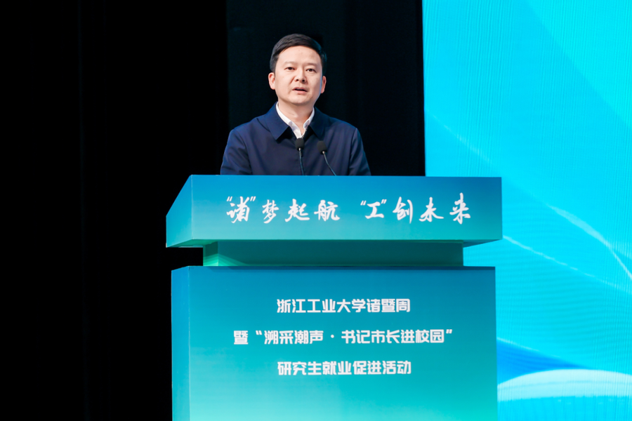 张昆仑从历史文脉、交通区位、产业特点、人才招引、政策服务等方面向领导嘉宾、浙工大学子介绍了诸暨经济社会发展情况。他说,一直以来,浙工大以“厚德健行”为训,培养了一代代优秀学子。从机械工程到数字科技,从生物制药到环境科学,浙工大的科研成果屡获国家级奖项,创业团队频频在各类大赛中摘金夺银。这种敢闯敢拼、追求卓越的精神,与诸暨人耕读传家、勇立潮头的气质高度契合。此次活动,是诸暨与浙工大合作的进一步深化,通过文旅推介、企业推介、专场招聘等方式,向大家诚挚发出“邀请函”,希望各路英才了解诸暨、来到诸暨,共筑梦想、共赢未来!