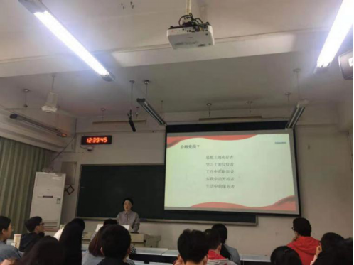 在开班仪式后,吕刚老师做了题为“党的根本宗旨、优良作风、组织原则和纪律”的首场党课。吕刚老师首先对中国特色社会主义进入新时代这一重要政治判断做了深入阐述,围绕新时代党的建设的总要求,突出加强党的思想建设,以坚定理想信念宗旨为根基,以调动全党的积极性,主动性,创造性为着力点。作为新时代一名入党积极分子应以习近平新时代中国特色社会主义思想武装头脑,要充分认识入党积极分子培训的重要性,积极参加党内有关的活动,并经常向党组织汇报自己的思想工作情况。之后伍建华老师以“十三五”规划与大学生发展为主题,跟大家分享了一些他的见解与看法,他在课上多次强调要从思想深处端正入党动机,作为一名优秀的入党积极分子应对党有深刻认识,坚定理想信念。