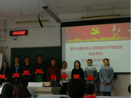 在为期一个月的学习后,共有65名同学顺利结业。11月7日在新教204顺利举行结业典礼,就本次培训做了总结回顾,公布学员成绩;优秀学员代表和优秀党员代表进行发言。优秀党员余嘉铭同学分享了自己的入党故事,介绍成为党员后自己的成长和进步。