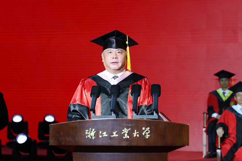 President Li Xiaonian delivered a speech on Honest Virtue, Honesty and Fine Art. He said that next to the ancient canal, at the foot of Xiaohe Mountain, and at the foot of Mogan Mountain, you have nurtured your thoughts, shaped your values, and gained your skills, and have gone through the most special and beautiful journey in your life. You have worked hard and never stopped, and the most beautiful things of youth are shining on you. Li Xiaonian emphasized that the lofty spirit is the soul of a great cause. The Learning of Adults aims to carry forward the moral character of uprightness and integrity, and through education to promote oneself and others, and achieve perfection. In recent years, the students have infiltrated, nurtured and developed the spirit and culture of ZJUT, and cultivated the common characteristics of studying for others and ruling the world. The school motto of Honest Virtue has become our eternal spiritual coordinate; the study style of extracting the essence and making good use of it is the practical guide for every ZJUTer's honest and refined skills.