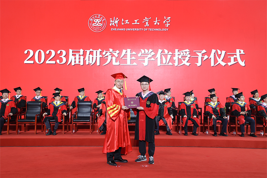 On the afternoon of June 18th, the 2023 graduate degree awarding ceremony took place at the Pingfeng Campus gymnasium. The ceremony was presided over by Li Xiaonian, Chairman of the Degree Evaluation Committee and President of Zhejiang University of Technology (ZJUT), and Chen Jie, Deputy Secretary of the CPC Committee. Representatives of relevant functional departments, college leaders, graduate advisors, and graduate students attended the ceremony, which was simultaneously broadcast online.