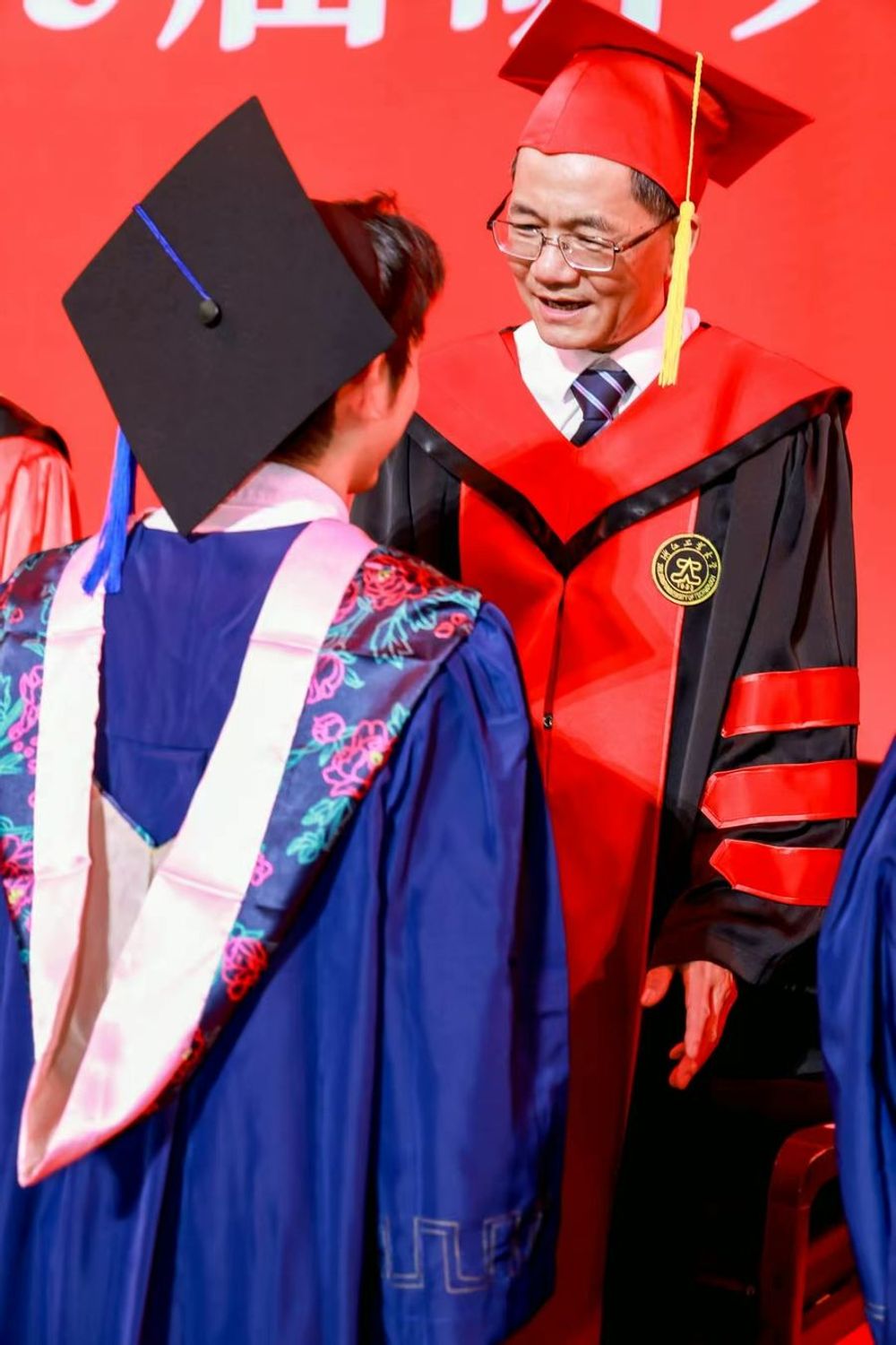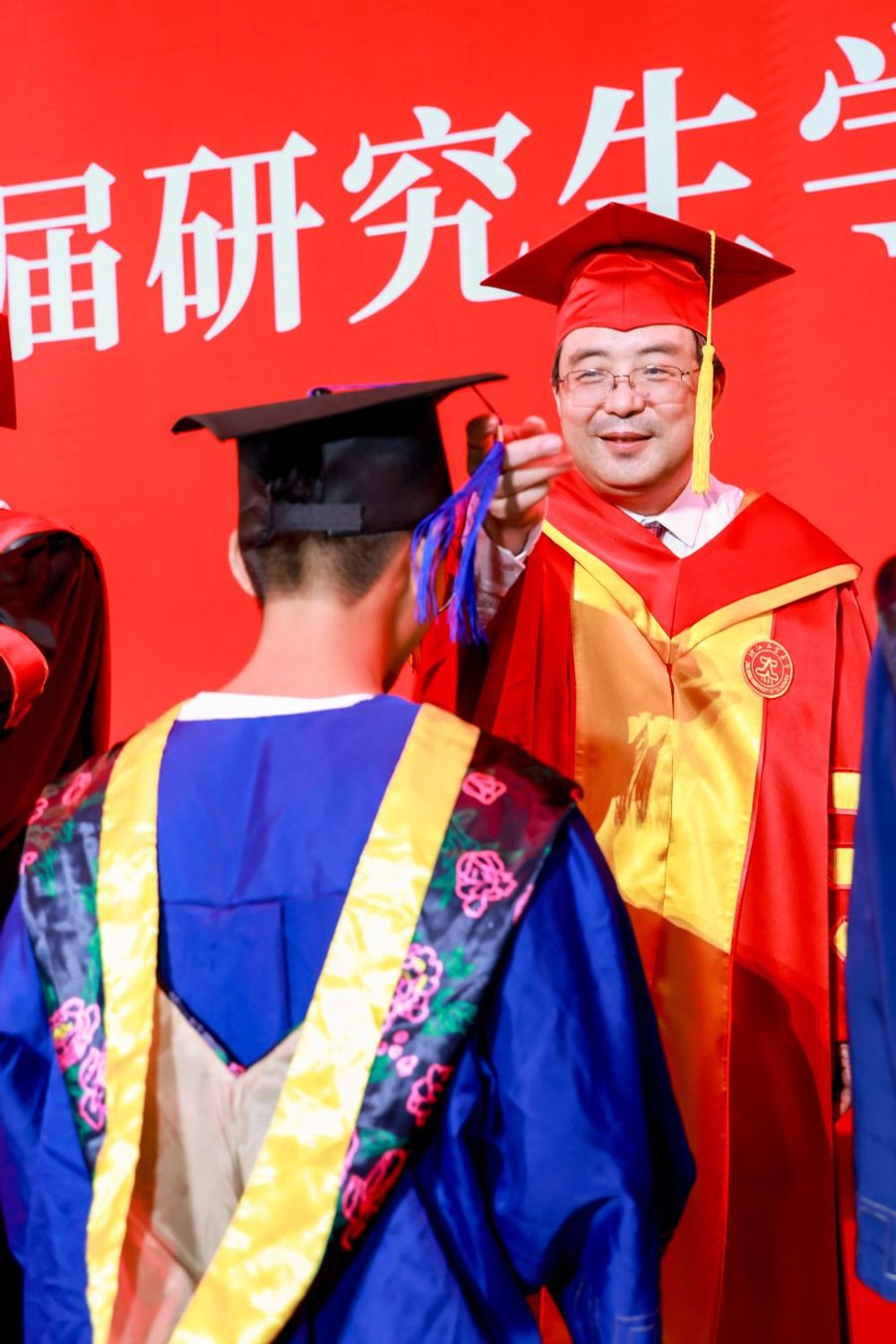 The guest of honor performed the hooding ceremony for the degree recipients and conferred the degrees. Vice President Hu Jun read out the decision on awarding doctoral and master's degrees. Wu Juhui, the Party Committee Secretary, presided over the ceremony.