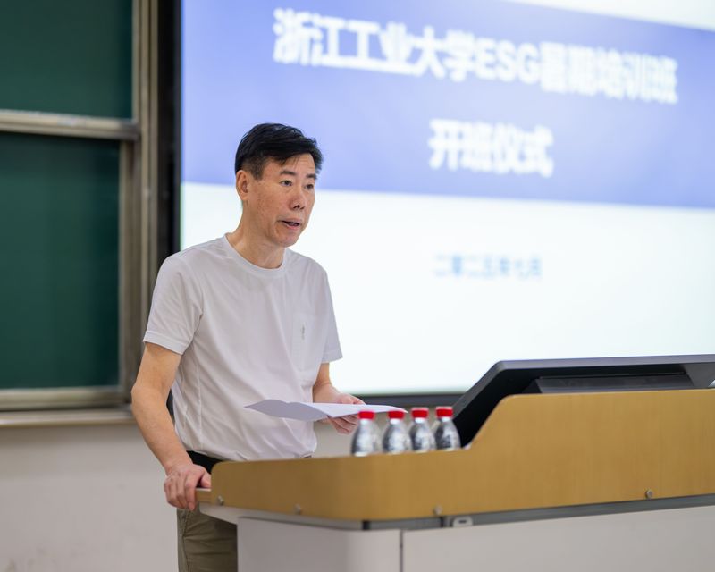 今年是“两山”理念提出二十周年,为积极响应生态文明建设战略部署,培养可持续发展人才,推动区域绿色发展,7月29-30日,浙江工业大学环境学院联合浙江省可持续发展研究会举办首届ESG暑期培训班。浙江省可持续发展研究会常务副理事长兼ESG专委会主任王桂良、副主任王平,学校教务处副处长王永固,学院党委书记王家德、副院长胡钟霆,管理学院副院长曹柬出席开班仪式。来自环境学院、管理学院、经济学院和设计与建筑学院的70余名研究生和本科生参加培训。
