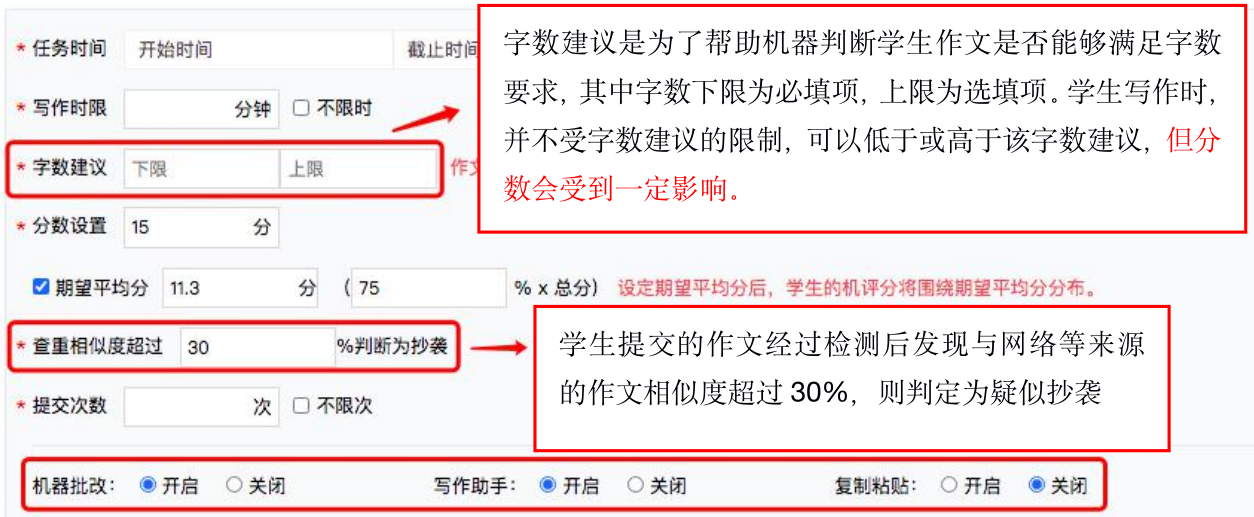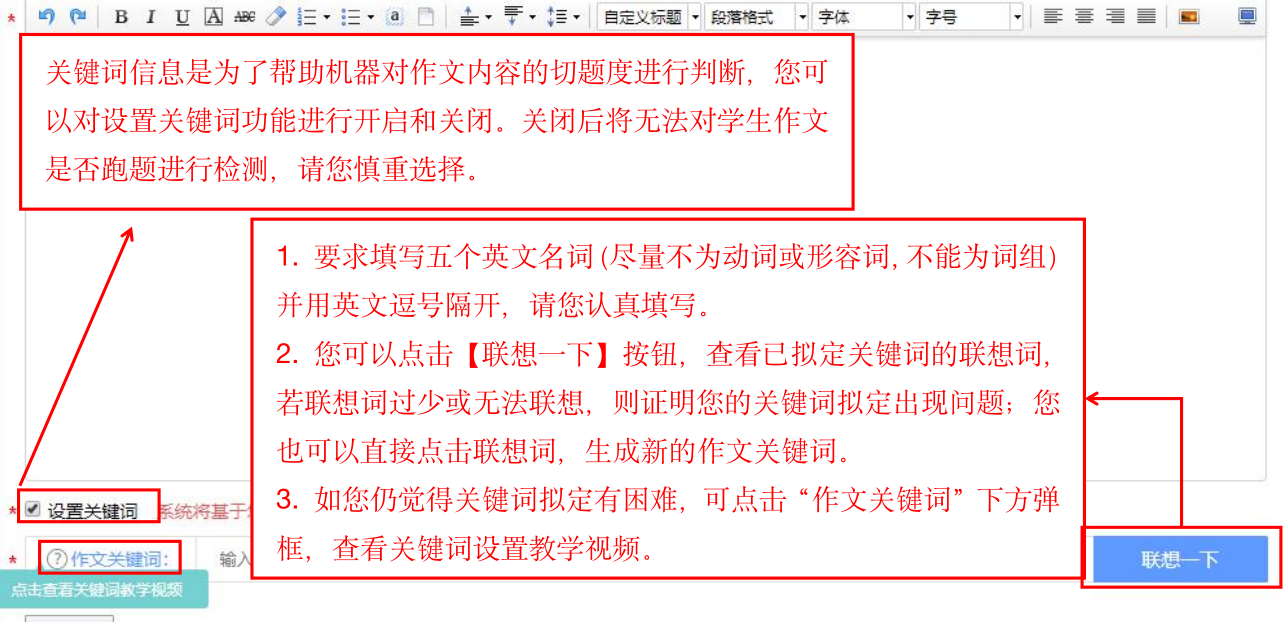 自主命题时,您需要在标题栏及编辑框内分别输入新作业的标题、指令及作文关键词。