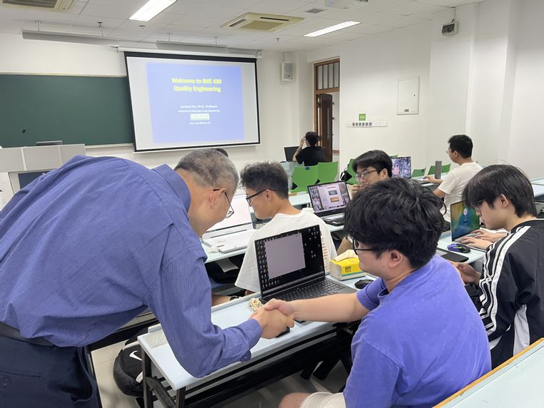 课程邀请美国加州州立理工大学(Cal Poly State University)Jianbiao Pan 教授在浙江工业大学(屏峰校区)开课,为学生们带来了多元化学习体验。本次参加该暑期国际化课程的有9位浙江工业大学本科生、11位浙江工业大学研究生。课程教学内容包括6月29日至7月10日的课堂教学,并深入美迪凯(浙江)智能光电科技有限公司参观芯片制造企业生产过程与学习质量管理体系经验,于8月23日线上完成了课程的最终答辩,美国教授、学院领导和团队教师参与了答辩。