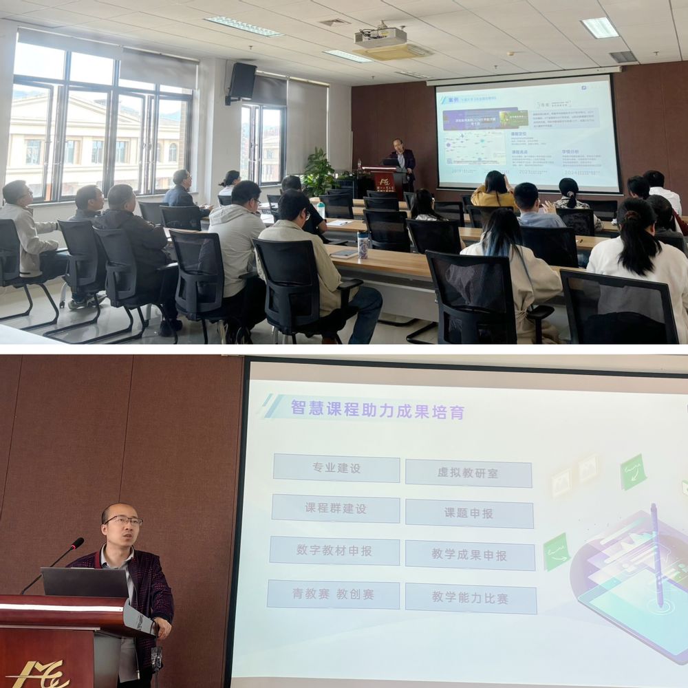 朱进伟介绍了人工智能赋能教学的发展现状及智慧课程的三大核心:知识图谱、AI智能体和任务引擎,并结合课程建设案例讲解了人工智能在教育教学全过程的深度应用情况。报告展示了AI如何在教学设计的精细化、课堂互动的多元化以及学习评估的智能化等方面的应用,赋能提升教学质量与学习成效。与会人员围绕如何利用知识图谱构建智能教学系统、AI技术如何赋能专业课程设计与教学创新等进行了交流与探讨。