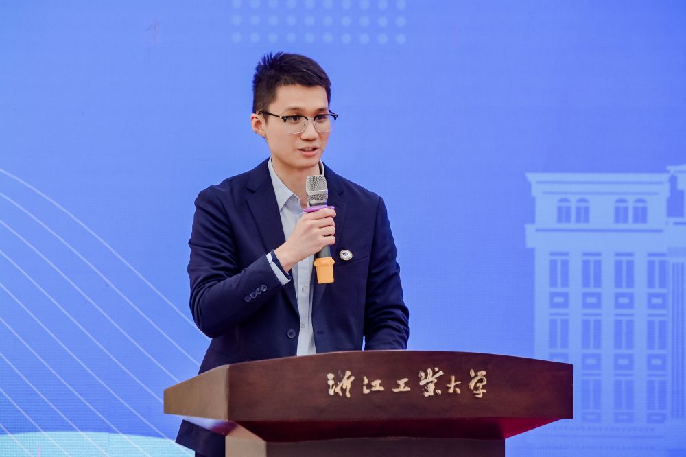 第六期深蓝导师代表、浙江省数字经济学会常务副会长章丰在致辞中表达了对学校、学院培养的感谢,并指出,作为新时代的大学生,面对的是“多段式的人生”,要把多段人生过得更加充实,就要让自己变得更加多元、更加开放,对变化和未知充满探索欲和包容心态;每一位深蓝导师都会履行导师职责、整合自己的资源优势,在有限的时间里发挥无限的作用,全力帮助深蓝学员更广泛地接触、理解、感受社会,在巨大的变革面前,把自己的学习、工作、人生经营得更加有价值。