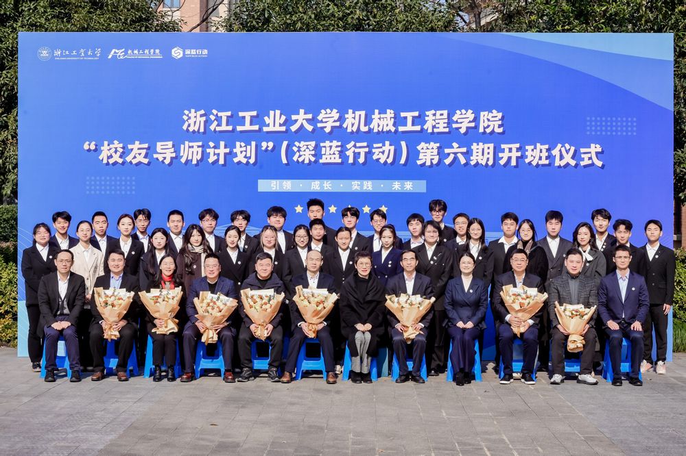 12月21日上午,浙江工业大学机械工程学院“校友导师计划”(深蓝行动)第六期开班仪式在屏峰校区举行。机械制造工艺与设备94届校友、浙江铭匠科技有限公司董事长罗邦才,机械制造工艺与设备95届校友、浙江省数字经济学会常务副会长章丰,机械制造工艺与设备98届校友、浙江苏泊尔股份有限公司副总裁叶继德,机械设计与制造(机械电子工程)98届校友、博世电动工具(中国)有限公司全球新兴市场事业部精益设计和工业4.0负责人赵国利,机械工程及自动化02届校友、海天塑机集团有限公司海天路事业部总经理兼生产运控中心总监助理曹军,机械工程及自动化08届校友、浙江暨诺科技有限公司总经理蒋干,机械工程及自动化08届校友、浙江平安财产保险股份有限公司浙江分公司滨江支公司总经理张辉,学校合作发展处(校友联络办)处长应四爱,学院党委书记章嫦华,数字化制造产业学院执行院长、台州研究院院长潘柏松,学院校友工作办公室主任曾晰出席活动。32名第六期深蓝学员参加活动。仪式由学院党委副书记夏航主持。