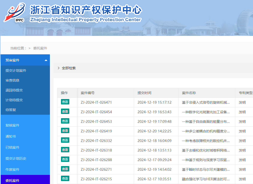 浙江工业大学为第一专利权人(含唯一专利权人)、项目经费支付(含合作单位支付)申请费、已授权、预审或优先审查材料提交给官网的时间介于2024年9月25日-12月31日期间的发明专利。