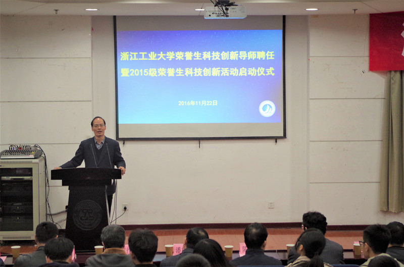 首先,院长陈煜代表健行学院对各位导师表示衷心的感谢,强调了聘任荣誉生科技创新导师的意义。荣誉生科技创新项目是健行学院培养荣誉生创新思维和科研实践能力的重要平台,聘任科技创新导师更是学院对于指导培养荣誉生综合素质的又一新动力和有力抓手。另外,陈煜院长也勉励健行的学生要善于发现、学会质疑,勇于探索、敢于试错,不断提高自身科技创新能力。
