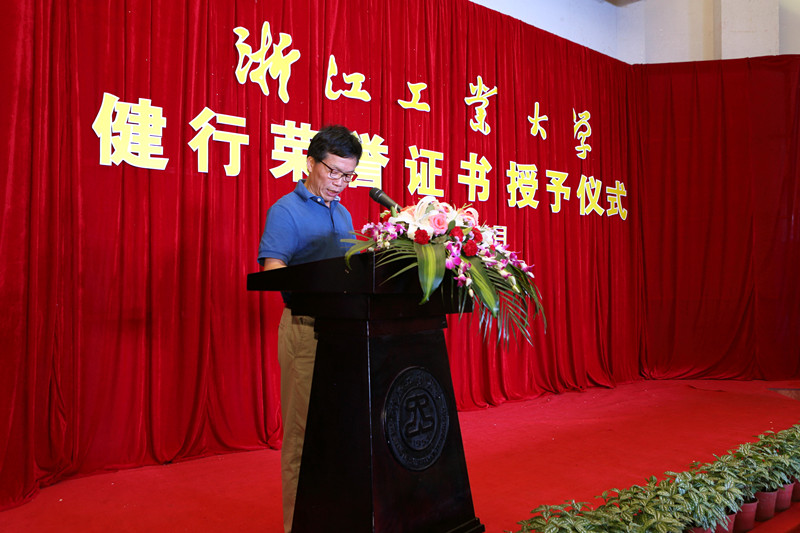 6月17日上午,学校在屏峰校区致远楼报告厅举行了2017年“浙江工业大学健行荣誉证书”授予仪式。副校长华尔天,学校办公室、教务处、学工部、团委等学校健行荣誉证书评定小组成员单位负责人出席仪式。2017年学校健行荣誉证书获得者、荣誉生导师代表、荣誉生班主任及毕业生家长代表参加了仪式。