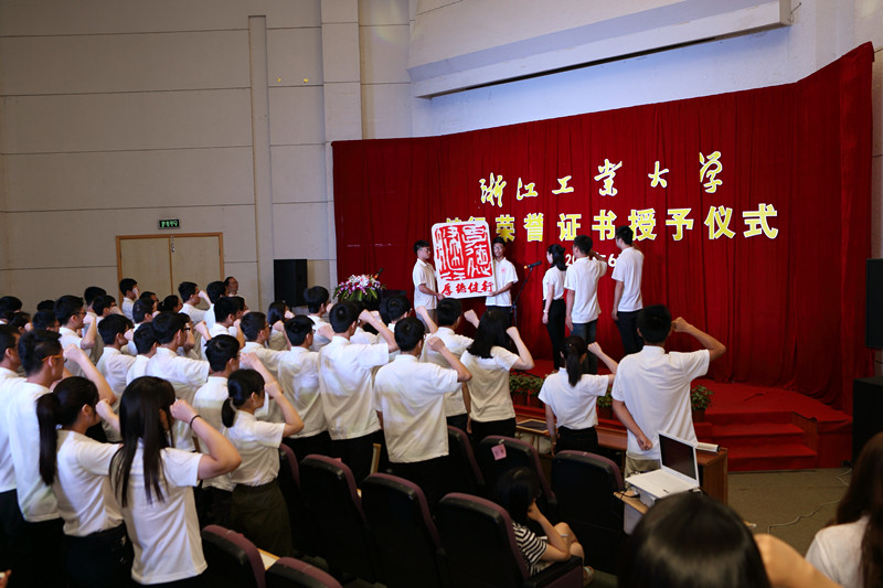 仪式上,学校对6位优秀荣誉生导师进行了表彰,华尔天为他们颁发了“浙江工业大学健行荣誉导师证书”。同时,华尔天与122名健行荣誉证书获得者握手,为他们授予证书,并合影留念。