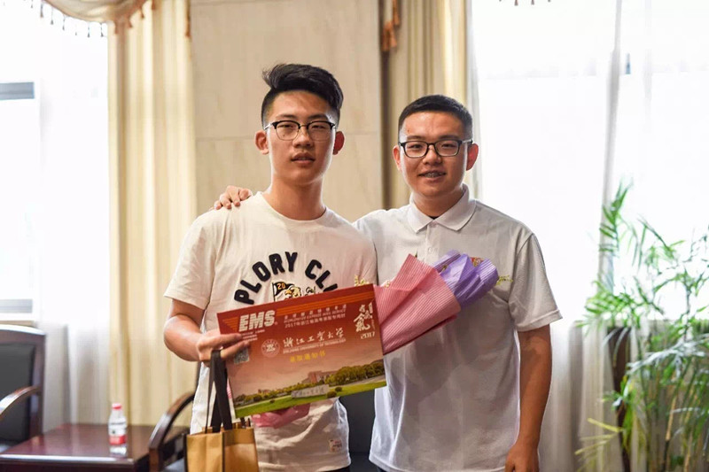 7月9日,来自宁波效实中学的两位考生薛竞袆和潘圣益收到了他们等待已久的礼物——来自浙江工业大学的第一封录取通知书。两位新生在高中母校收到通知书,满脸欣喜,进入浙江工业大学健行学院学习的梦想实现了,心中的喜悦溢于言表。 两位同学都是综合素质非常全面的学生,他们在今年3月三位一体的面试中经过层层选拔,最后通过我校“三位一体”综合评价招生以优异成绩录取到健行学院实验班。
