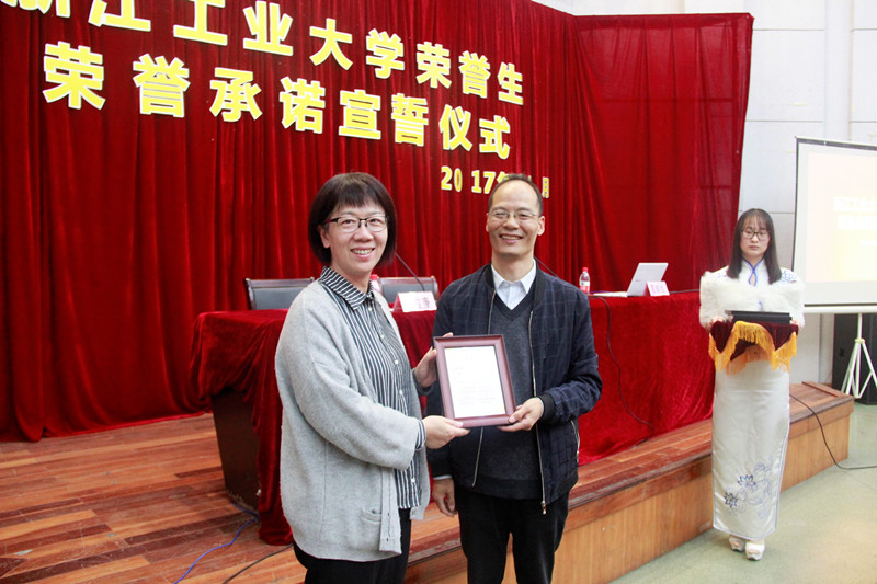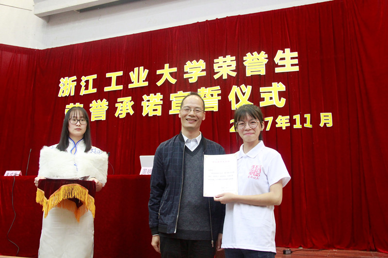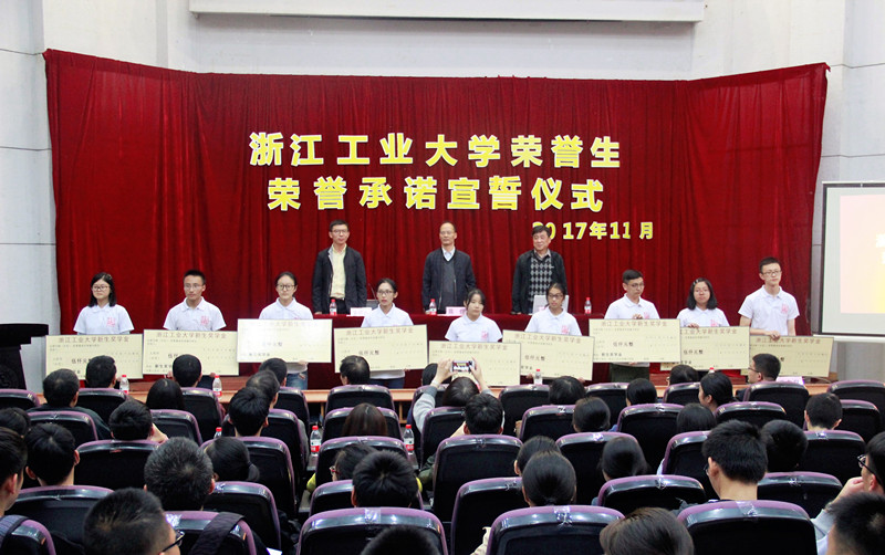 11月2日,健行学院在致远楼报告厅举行了2017年浙江工业大学荣誉生荣誉承诺宣誓仪式。2017级实验班、2016级新校内选拔荣誉生共90人参与宣誓。学院领导、2016级荣誉生导师代表、学院教师、班主任作为承诺见证人参加了仪式。仪式还在两校区进行了网络直播,近150名荣誉生观看了仪式。