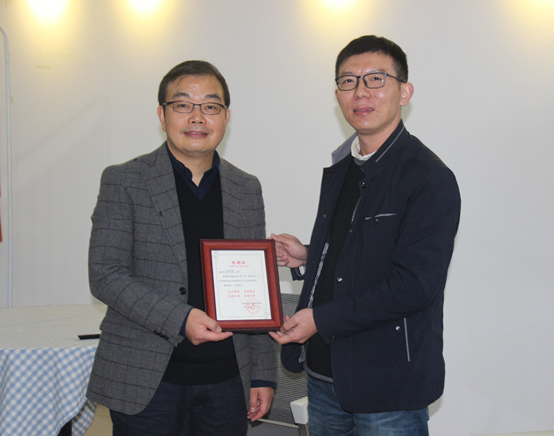 图3:学院党总支副书记朱成康给车教授颁发感谢状