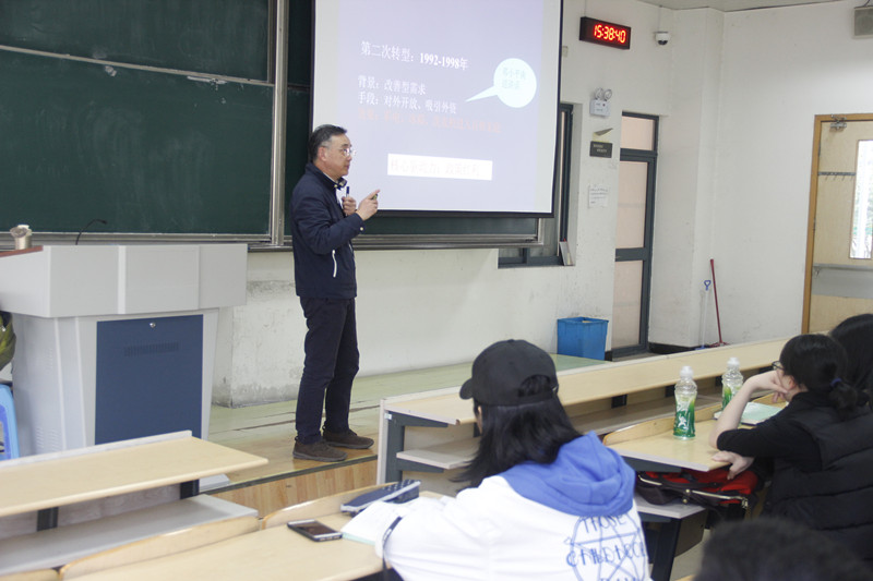 3月27日,浙江工业大学教授、博士生导师彭伟来到博雅讲坛现场,就“经济转型与产品创新”为主题给同学们带了一场别开生面的讲座。