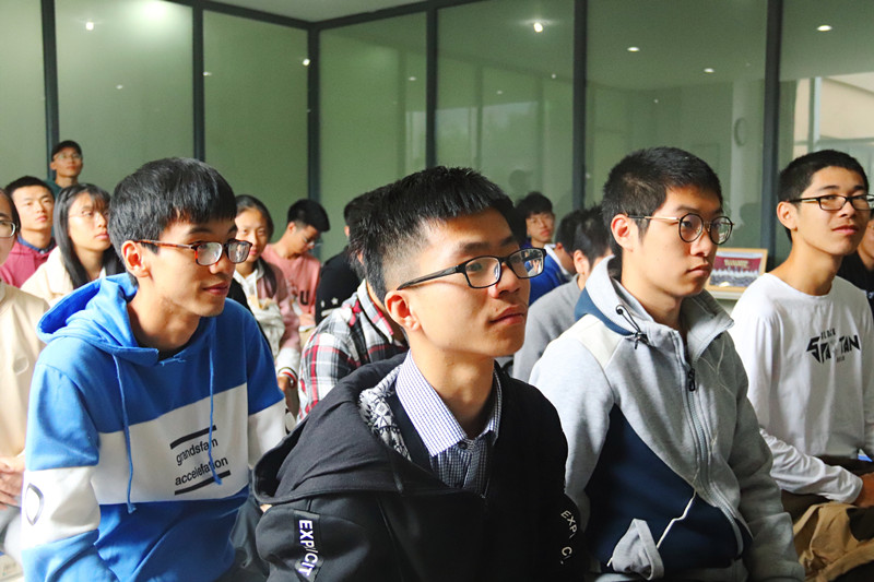 除了详细介绍三位伟人的贡献之外,他还引申谈到了诸如比尔·盖茨、乔布斯、埃隆·马斯克等商业巨头的物理学背景,并做出“物理学原理提供发明的基础、创造的动力和逻辑基础”的最终总结,这除了是对物理学的实用性和伟大性的肯定以外,更是对同学们重视物理学理论研究的鼓励。他也建议同学们在平时应当注重对物理学著作尤其是英文原典的研读。