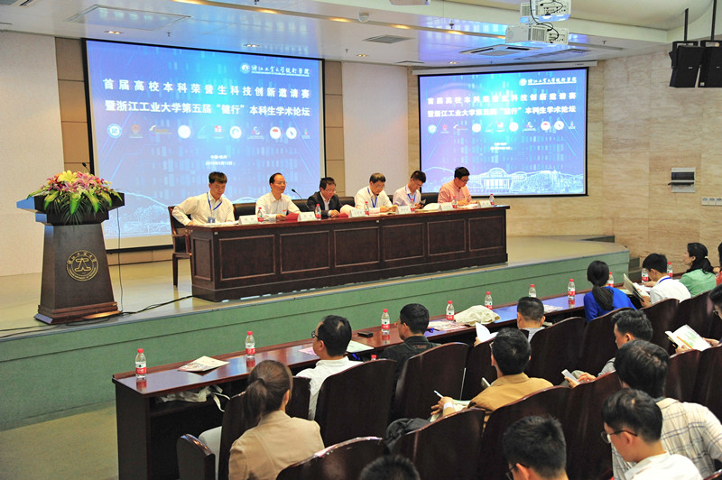 5月12日,首届高校本科荣誉生科技创新邀请赛暨浙江工业大学第五届“健行”本科生学术论坛在屏峰校区举行。浙江省教育厅高教处副处长王国银,浙江大学教授、博士生导师、国际教育学院副院长、原竺可桢学院副院长唐晓武,上海大学钱伟长学院党总支副书记沈青松,湖北大学楚才学院党委副书记韩凯,杭州电子科技大学卓越学院党总支副书记何晨玥,学校教务处副处长顾容,党委学工部副部长、学生处副处长姚鹏,团委副书记刘琼,以及校内外评审专家出席了开幕式。本次活动由健行学院发起,省内外11所高校荣誉学院(创新实验班)参与,经选派,共65项作品参与现场答辩评审。