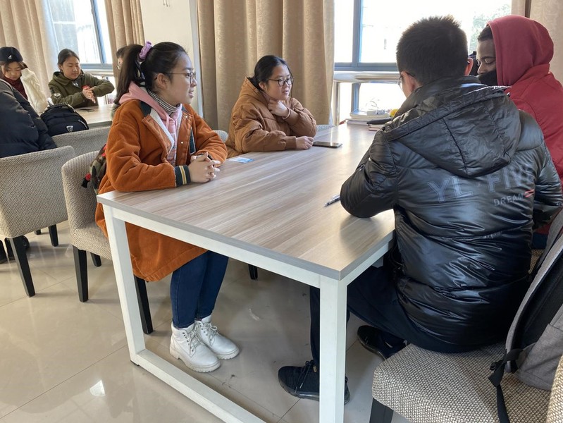 最近一期的主题是大学的“内卷”现象,在留学生的引导下,每位同学对这种现象的优势与弊端发表了自己的意见。而这天同学们要对高考是否要取消进行讨论,经历过高考的大家积极踊跃地分享着自己的看法,尽管有些同学的口语略显生涩,但在留学生和大家的带动下也逐渐流利起来。一次在对自己最难忘的经历进行分享时,一位留学生主动带头分享了自己有趣的爱情往事,同学们在笑容满面的同时也深深感受到了他国的校园风貌。