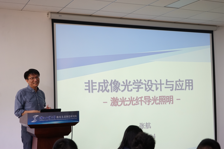 4月14号上午,浙江工业大学物理学院张航副教授应邀来我院作题为“非成像光学设计与应用-激光光纤导光照明”的前沿讲座,本次讲座由副院长张群莉教授主持,研究院全体教师到场聆听。
