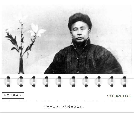 霍元甲1868年生于天津静海县,出身镖师家庭,继承家传“迷踪拳”绝技。幼年体弱,在27岁以前基本上生活在故乡,时常挑柴到天津去卖。28岁后到天津当上码头装卸工,后来在农劲荪开设的怀庆药栈当帮工,升任掌柜。1909年,41岁的霍元甲,由农劲荪介绍来上海,接受由陈公哲、陈铁生所创办“精武体操会”中主教武术。孙中山对霍元甲“以武保国强种”的胆识给予了很高的评价。在精武会成立10周年之际,他亲临大会,题写了“尚武精神”四个大字,以示对霍元甲的纪念。