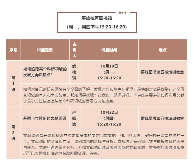 下周信息与服务讲座预告