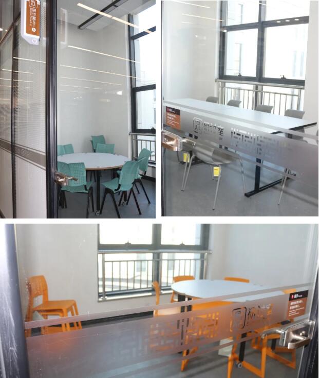 莫干山校区图书馆研讨室位于图书馆第4及第5楼层。研讨室采用密闭设计,旨在强化互动、激发创新,主要用于学术研讨、团队项目交流分享、信息演示与发布,实现“零距离”互动。