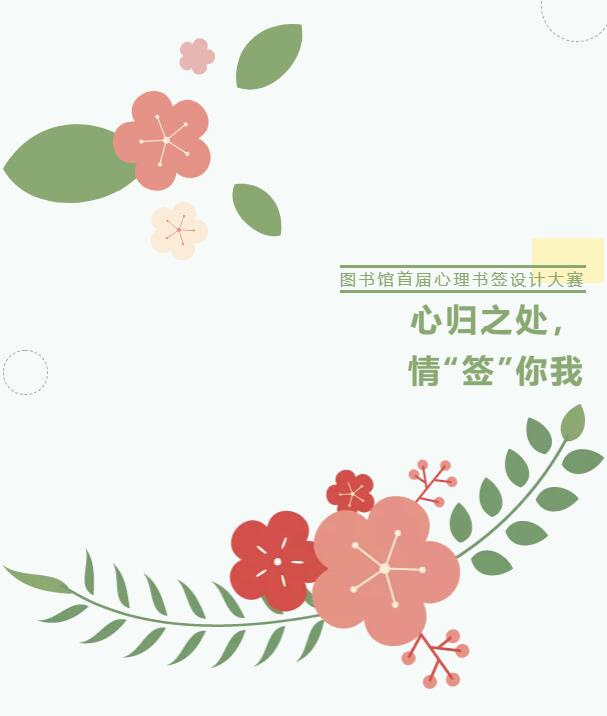 为进一步加强大学生心理健康素质建设,将心理健康育人积极融入图书馆书香育人体系,激发学生对心理健康的关注和对美的追求,积极营造和谐健康、积极向上的校园文化氛围,图书馆举办首届心理书签设计大赛。