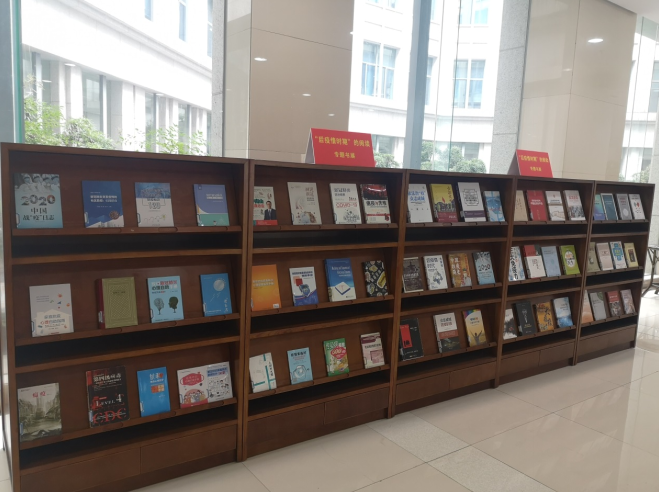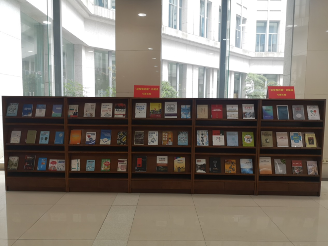 本次专题书展位于屏峰图书馆一楼大厅,参展图书展示在党建书刊专栏区域,供广大读者借阅。我们从馆藏资源中精选出《在经历中学习——疫情防控公开课》、《钟南山健康忠告》、《张文宏说传染》、《后疫情时代大重构》、《传染病的建模与动力学》、《后疫情时期的中国经济再平衡》、《全民防控新冠肺炎法律导读》等囊括政治、经济、历史、法律以及医学、心理、健康卫生各个领域的专题书籍。可谓文、理、工、医各个学科百花齐放,好书连台、精彩纷呈、可圈可点。