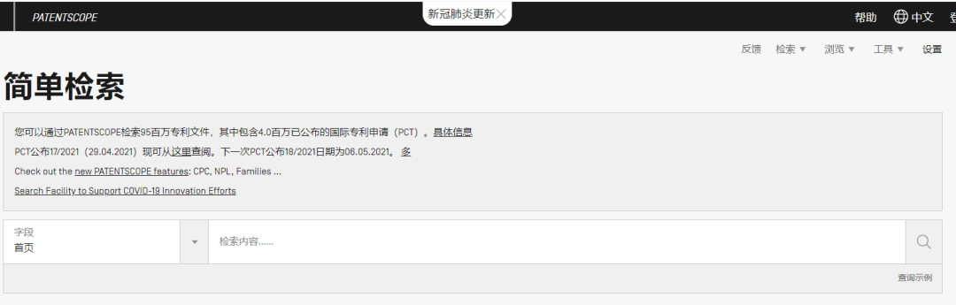 访问链接https://patentscope2.wipo.int/search/zh/search.jsf