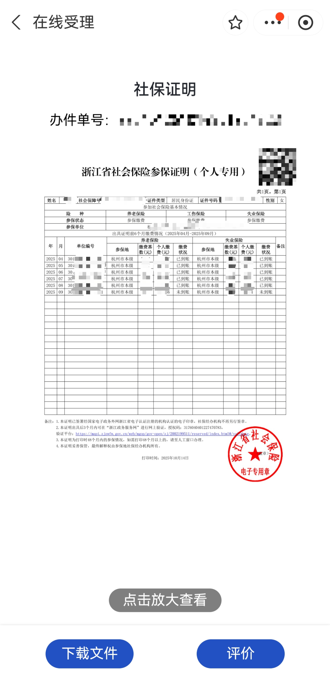 提示:非杭州户籍的往届毕业生如何在支付宝上打印的用人单位为其缴纳的社会保险凭证(2025年7、8、9月或2025年8、9、10三个月在我市的参保证明)。