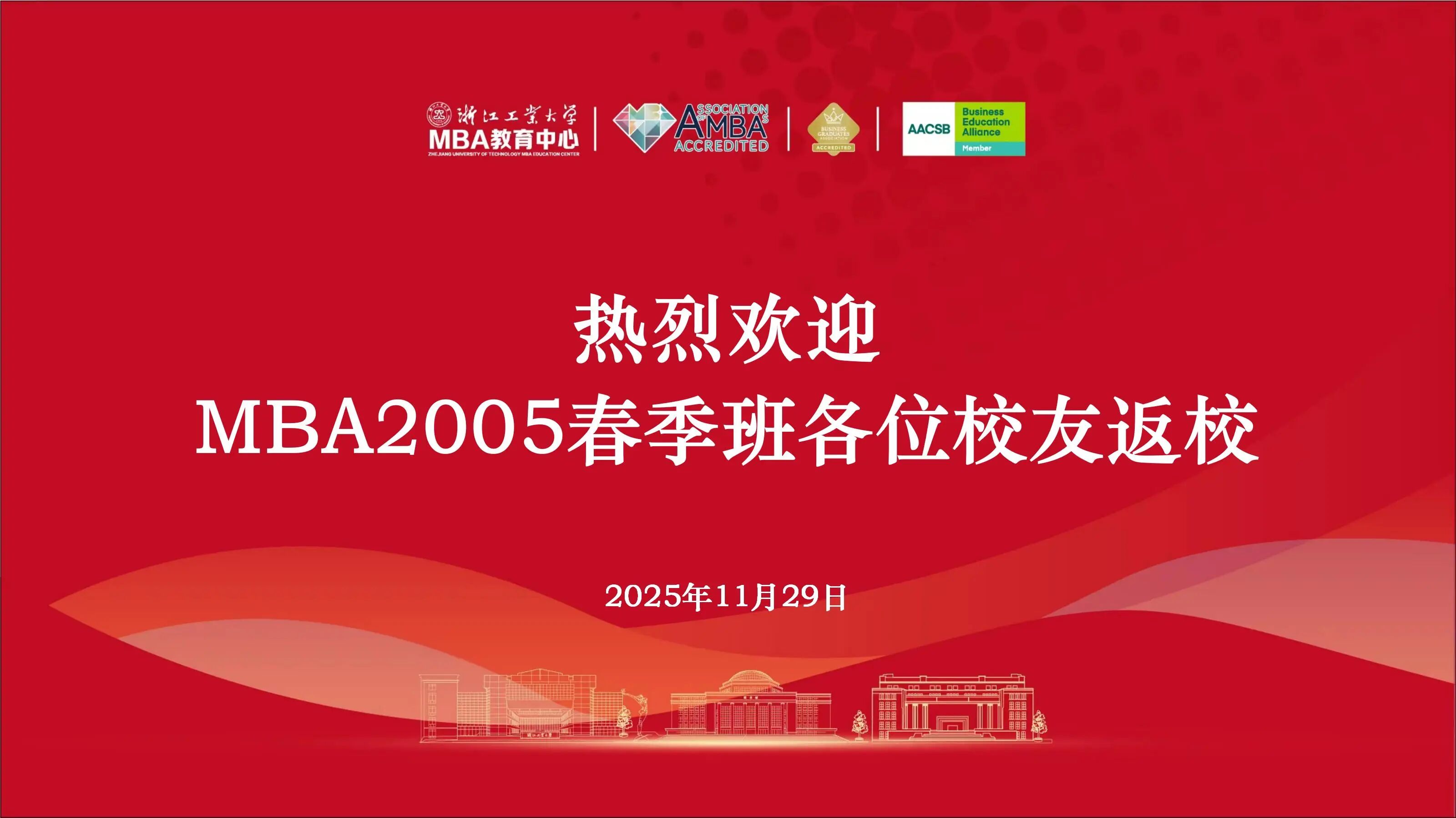 MBA教育中心主任陈铁军向返校的2005级春季班校友系统回顾了近年MBA项目的跃迁轨迹与亮眼成果。他提到,浙工大MBA项目20年来,不断发展和优化,课程体系持续优化,校企合作不断深化,生源质量和品牌影响力稳步提升。希望各位校友积极参与校友会活动,多回学校走走看看。