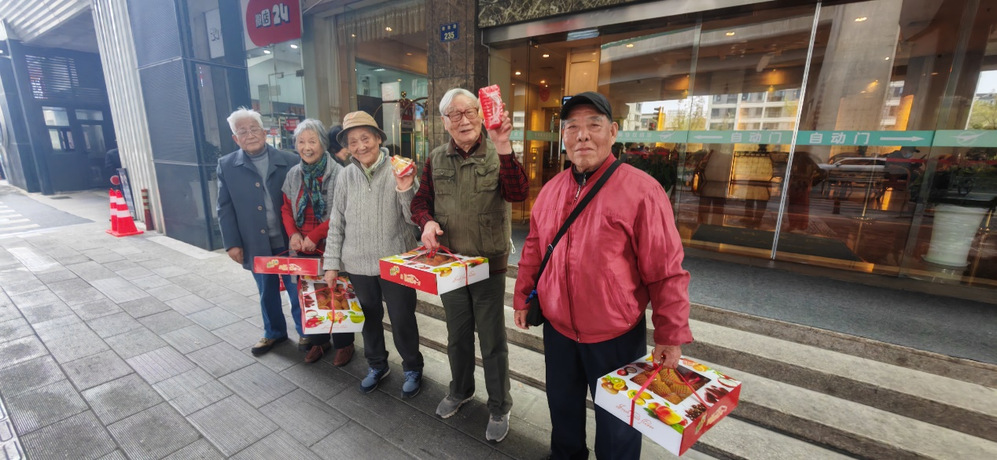 时间真快,转眼到了活动结束的时候,老师们既开心怡悦又依依不舍,有说不完的话、道不完的别。在翔园宾馆门前,支委代表支部给88岁及90岁以上的老师及家属送上苹果和人参果礼盒,并祝愿各位老教师和夫人们保重身体、笑口常开,期待着下一次的再相会!