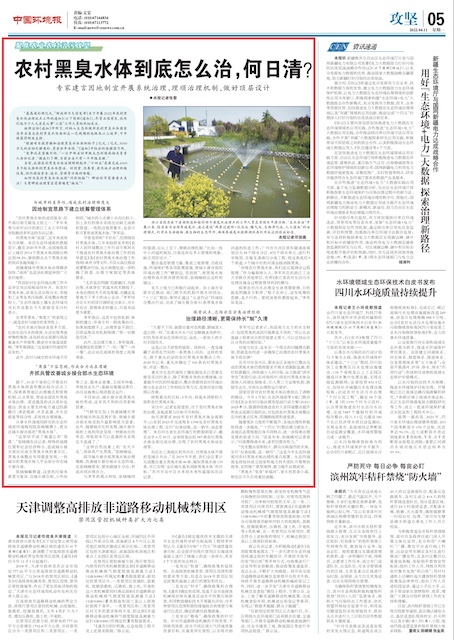 《中国环境报》以《农村黑臭水体到底怎么治,何日清?》为题,聚焦农村黑臭水体治理问题。报道中,李军提出黑臭水体农村与城市的差异性,造成农村治理难度大。他强调农村黑臭水体的治理要在因地制宜思路下建立统筹管理体系;应强调全过程管理;探索试点,总结分区分类治理经验。