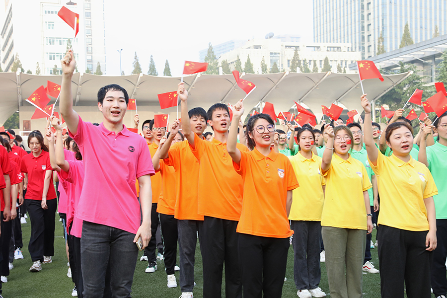 活动中,人文学院同学献上主题诗朗诵《与时代同向 与祖国同行》,全体师生高唱《歌唱祖国》。大家挥舞手中的国旗,齐声高喊:“请党放心,强国有我!争创一流、工大有我!”,把现场气氛推向高潮。