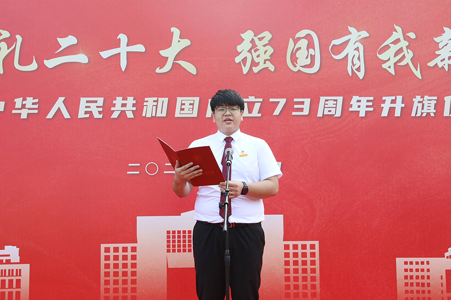 省第十五次党代会代表、机械学院博士研究生李亚飞同学作国旗下演讲。他号召全体浙工大学子要热爱祖国,把“小我”融入“大我”;要坚定理想,把“小梦”融入“大梦”;要开拓创新,把“小创”融入“大创”,在新时代新征程上赢得更加伟大的胜利和荣光!