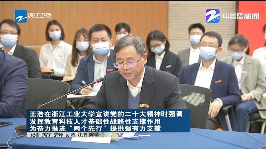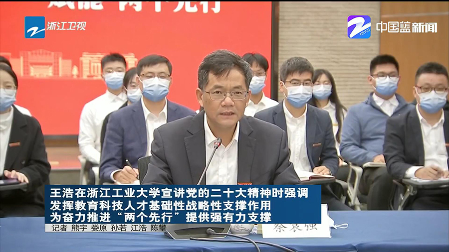 王浩指出,浙江工业大学是省属重点高校的“领头羊”,要牢记习近平总书记殷殷嘱托,深入学习贯彻党的二十大精神,为党育人、为国育才,深入推进“双一流”攻坚行动,持续加强学科建设,不断提升科研能力和成果转化水平,以更优实绩建强“两个基地”。希望各位老师把师德摆在第一位,不断提高自身道德修养,模范引导学生,不断更新教育教学理念,潜心钻研新的教学方法,当好为学、为事、为人的大先生。希望同学们听党话、跟党走,发扬青年人蓬勃向上的朝气,不负韶华、刻苦学习,成为建设祖国、建设浙江的栋梁之材,争做堪当民族复兴重任的时代新人。