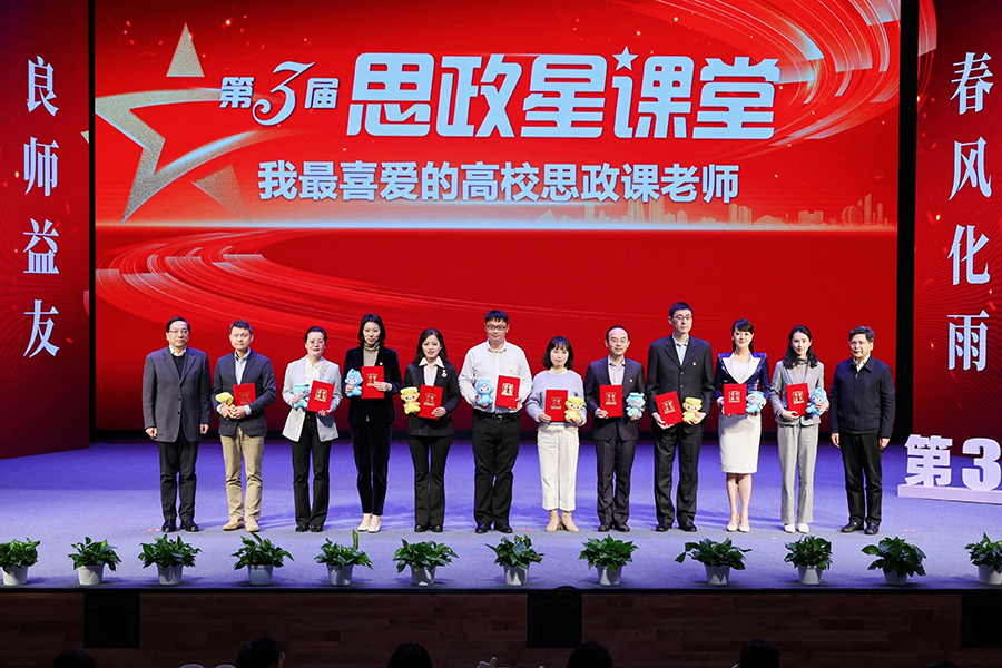 3月2日下午,第三届“思政星课堂”——我最喜爱的思政课老师推介宣传活动颁奖典礼在浙江工业大学屏峰校区举行。现场揭晓了包括 “我最喜爱的高校思政课老师”“高校优秀思政课老师”在内的全省20位优秀思政课教师名单。省委宣传部常务副部长、省委教育工委副书记来颖杰,省委教育工委专职副书记、省教育厅党组副书记陈春雷,校党委书记蔡袁强, 浙江日报报业集团副总编辑、潮新闻总编辑王水明出席并颁奖。