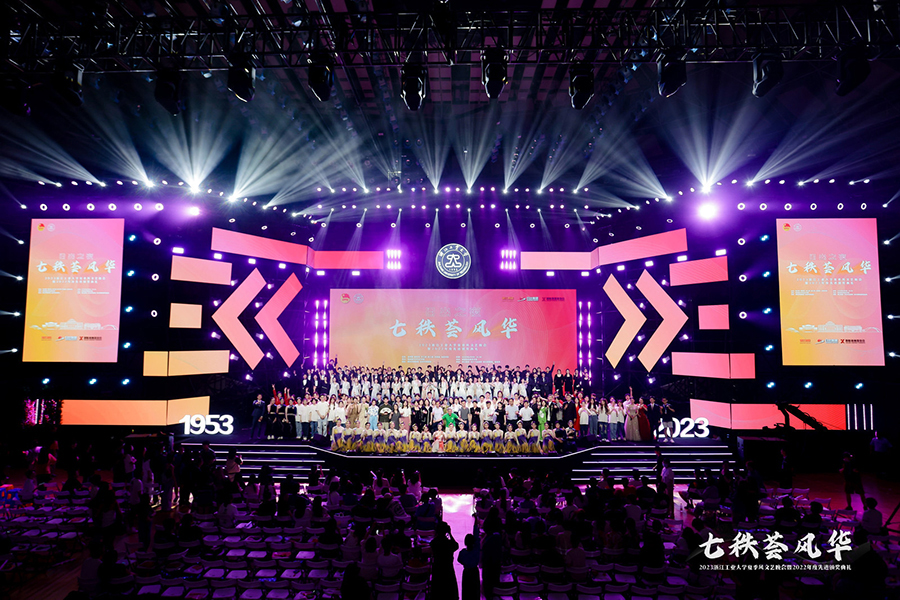 6月3日晚,“七秩荟风华”2023浙江工业大学夏季风文艺晚会暨2022年度先进颁奖典礼在屏峰校区体育大馆举行。校党委书记蔡袁强,副校长郑华均、金晓明,党委委员、组织部部长胡军,校友企业银江科技集团、日出实业集团、新隆控股股份有限公司等负责人出席活动。学校相关职能部门、各学院负责人和师生校友代表2000余人共同观看晚会。