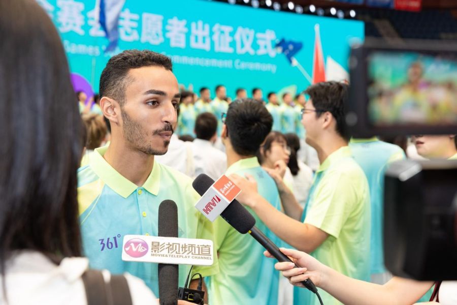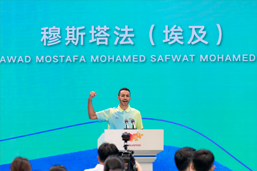 在出征仪式上,我校国际经济与贸易(中国商务)专业大二留学生穆斯塔法(埃及)作为国际志愿者代表发言。他表示,杭州亚运会不仅是一次体育盛会,也是文化交流互鉴的盛会,他愿和来自五湖四海的国际志愿者一起,共同弘扬“奉献、友爱、互助、进步”的志愿精神,努力完成志愿服务并当好文化传播者。穆斯塔法是一名热情积极的“洋主播”“志愿服务达人”,在入学一年间,他通过参与视频节目介绍中国风土人情、促进中外文化融合;作为国际志愿者参与校内外志愿服务活动40余次,志愿服务时长达367工时,以热爱与坚持践行“志愿无国界”的理念。