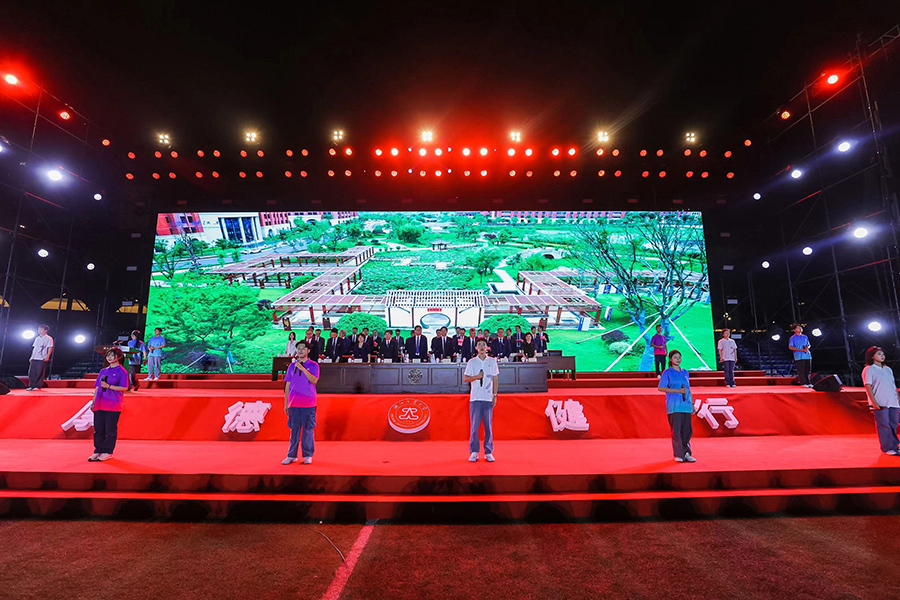 正式典礼开始前,现场播放了《无限可能》《院长寄语》《新“声”来啦》等宣传视频,新生表演了团体舞蹈《等你来》,青春联唱《我的未来式》《第一天》《同爱同在》等曲目。
