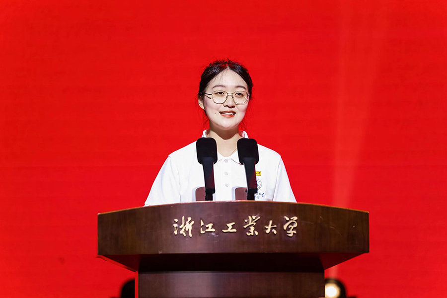 化学工程学院教师刘化章、土木工程学院教师付传清、管理学院教师程聪、化学工程学院博士毕业生钱亮、人文学院硕士研究生劳思瑶、环境学院博士研究生徐姝妍作为师生代表朗诵了《传承者》,希望同学们牢记办学嘱托,传承工大文脉。