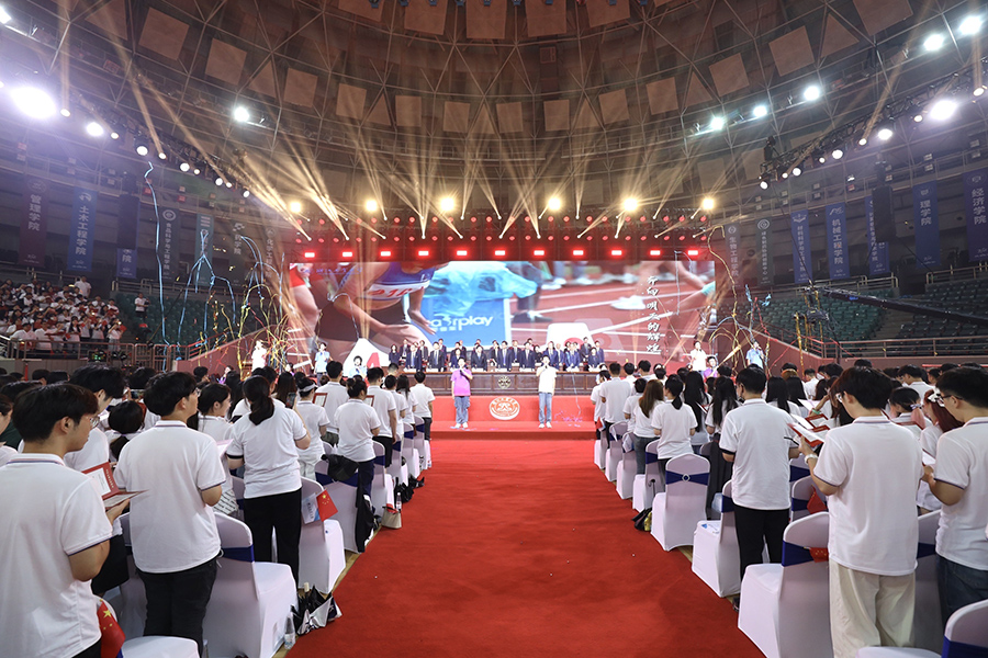 9月14日晚,学校在屏峰校区体育馆隆重举行2023级研究生开学典礼,并在莫干山校区师生活动中心以视频形式现场直播。学校党政领导班子成员蔡袁强、高翔、胡伟、陈杰、虞晓芬、郑华均、陈积明、陈庆红、金晓明出席典礼。全体2023级研究生新生、相关职能部门负责人、各学院主要负责人、学生工作负责人、教师代表和辅导员参加典礼。校党委副书记陈杰主持典礼。