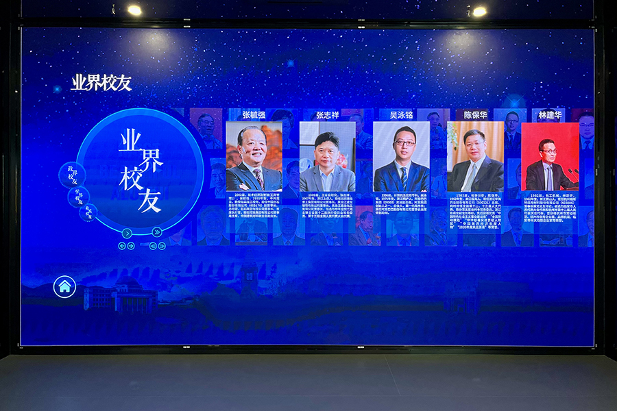 主展厅以时间为轴线,彰显了学校70周年栉风沐雨的办学历史,以“厚德健行”校训、“三创精神”和“两个基地”建设为主线,以重点事件、重点成果为亮点,重点突出“以浙江精神办学,与区域发展互动”的办学特色。其中,创新成果展区全面展示了学校建强“两个基地”、创建一流大学的办学成就,精选部分科研成果,反映新时代工大担当;校友风采展示了业界校友、学界校友、政界校友和最美校友,体现工大育人成就;尾厅还增设了校友综合服务查询一体机、部分标志性亚运物品等。改造升级后的校史馆,还可以根据参观者的时间安排,定制参观流线,模块化组合展陈主题。