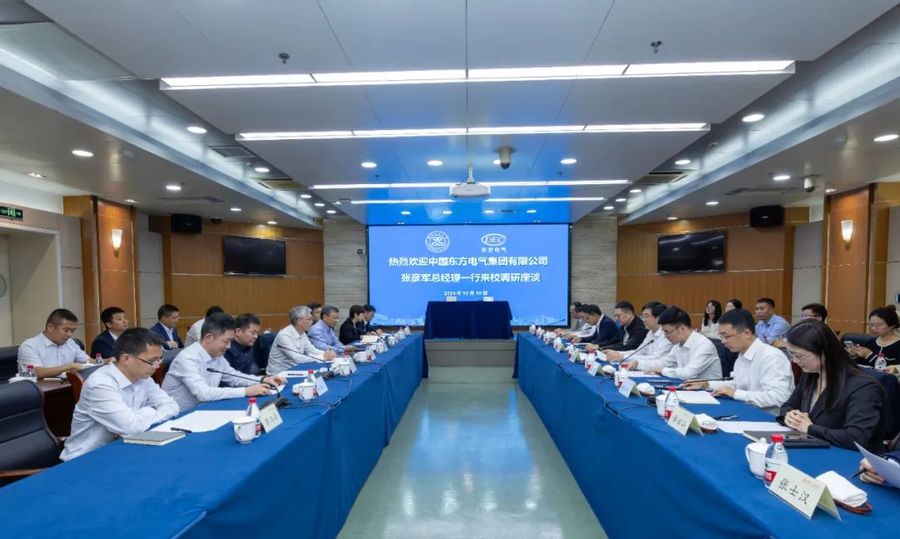 高翔代表学校对张彦军一行的到访表示欢迎。他说,东方电气在全球能源装备领域占据重要地位,是国家能源和发电设备制造行业的领军企业,拥有国家重点实验室、国家级企业技术中心等多个高能级平台,业务能力很强,是行业内的佼佼者。他向对方介绍了学校的学科建设、成果培育、人才培养及成果转化情况,并表示双方建立战略合作关系有着很高的契合度。他希望双方能以本次战略合作签约为契机,发挥各自特色优势,进一步加强科技资源与行业技术需求的对接,推动人才培育与应用实践的融合,为双方的高质量发展注入新的动能。