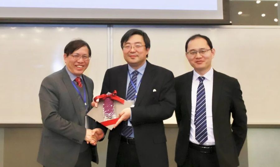 大会主席、香港理工大学智慧能源研究院王盛卫院长(左一)为高翔颁发会议纪念品