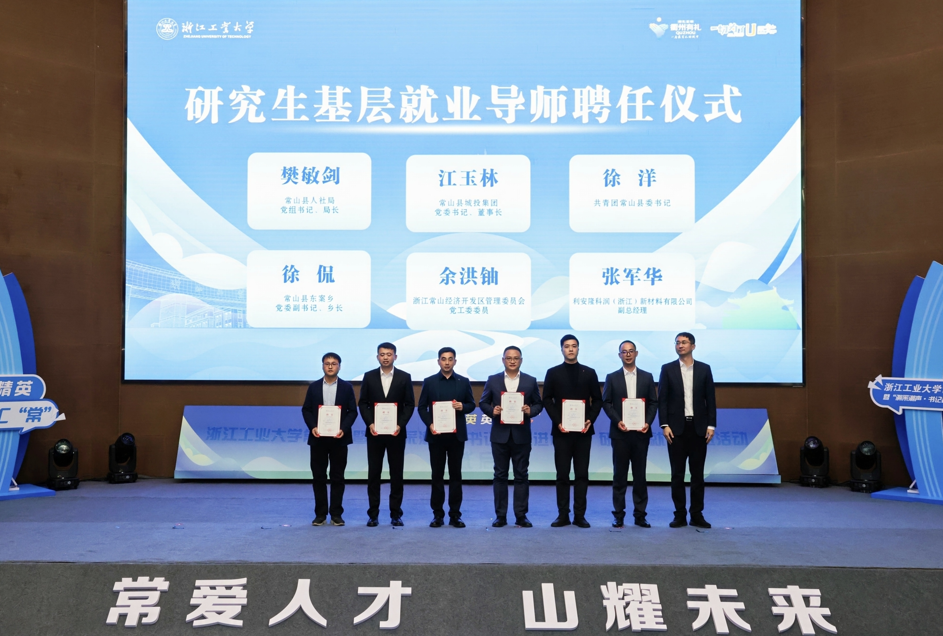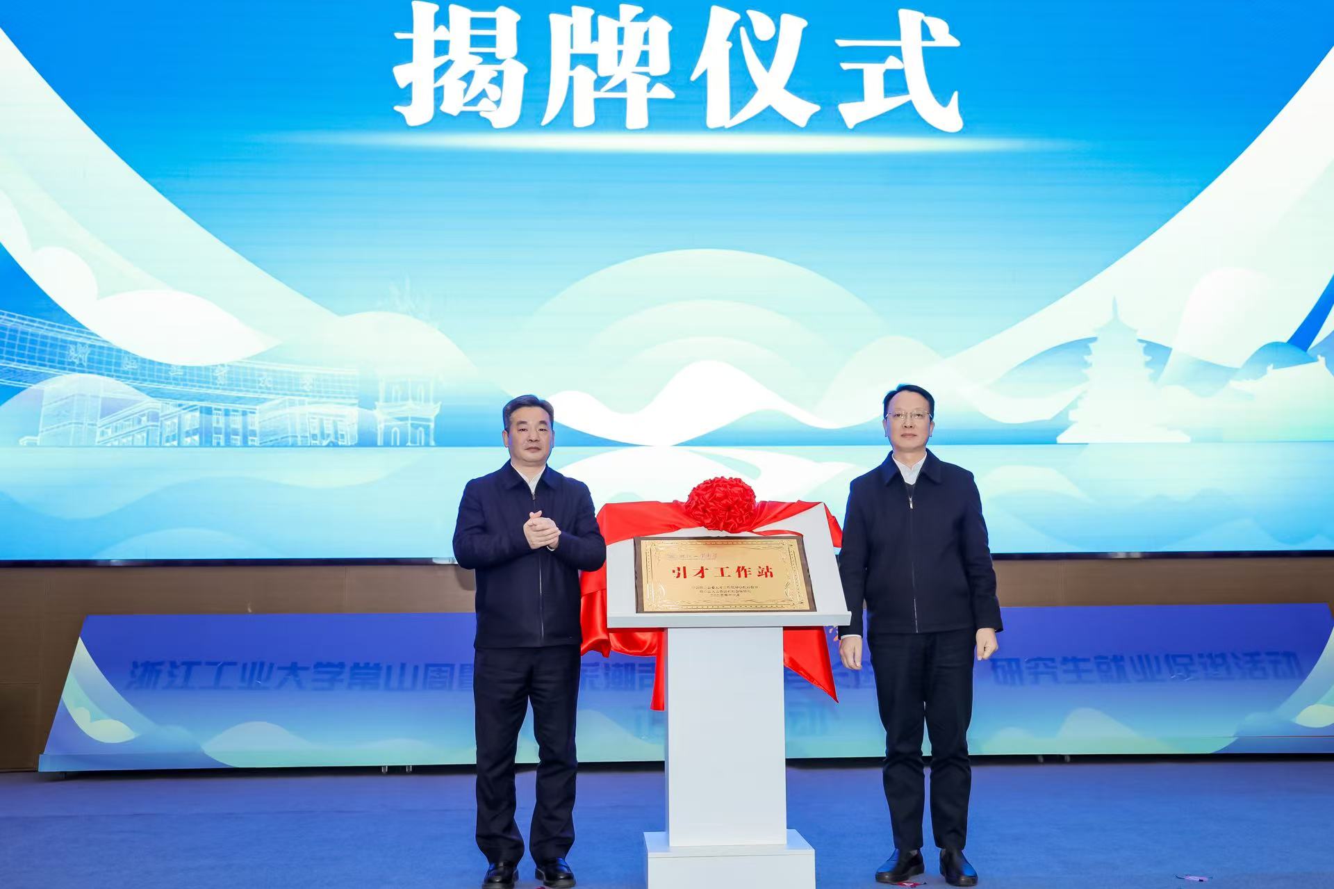 开幕式上,吴巨慧与徐惠文共同为浙江工业大学·常山县引才工作站揭牌。李珍为“科技副总”颁发聘书,章金平为“人才推荐官”颁发聘书,校党委研究生工作部负责人为浙江工业大学研究生基层就业导师颁发聘书。