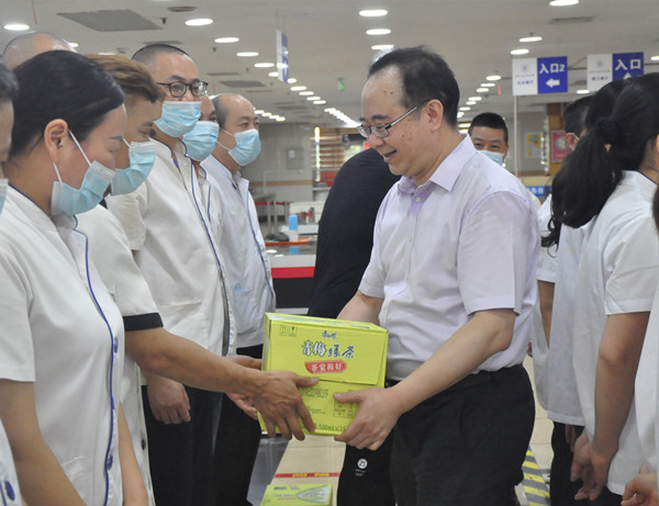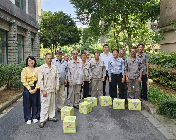 金校长一行先后走访慰问了新教楼、医院、尚德园13号楼学生公寓、毓秀堂二楼餐厅、园林花房等后勤一线工作人员,向这些在高温酷暑下依旧坚守岗位默默奉献的员工表示感谢,为大家送上解暑饮料,并亲切询问大家的工作与生活情况,叮嘱大家在坚守岗位的同时也要注意身体,做好防暑降温。在走访过程中,金晓明还向部门负责人详细了解近期工作的开展情况,对暑期工作提出要求,希望大家在即将到来的新学期里秉持“干在实处、走在前列、勇立潮头” 的韧劲继续奋斗。