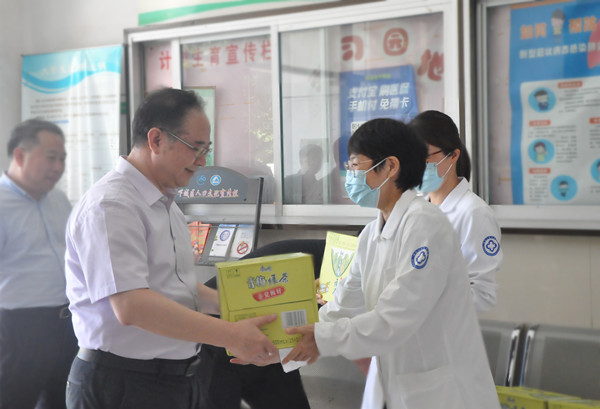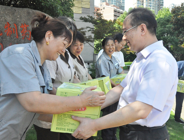 7月6日下午,校党委委员、副校长、党委组织部部长金晓明在集团总经理许天雷、党委书记彭松波、党委副书记杨燕、副总经理王海明的陪同下,走访慰问了在高温下坚守岗位的一线员工。